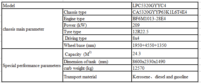 底盤主要性能參數(shù) | 底盤型號(hào) | CA5320GYYP63K1L6T4E4 | |