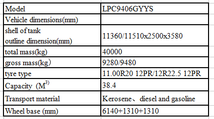| 罐體外形尺寸(mm) | 11360/11510x2500x3580 | |