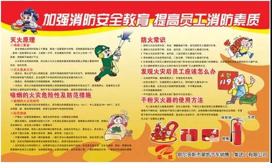 為進(jìn)一步提高全體員工的消防安全知識(shí)、防火意識(shí)以及滅火技能,2018年4月11日下午3:00,在凱馳公司二樓會(huì)議室,特邀請(qǐng)鄂爾多斯市億安消防知識(shí)科教中心